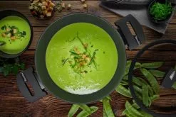 B.green.serien har nemlig en induktionsbund med et patenteret gitter, hvilket gør, at varmen fordeles optimalt. Samtidig virker den kraftige belægning i bunden forseglende og forhindrer rust. Gryden tåler desuden stegetemperatur helt op til 400 °C.