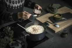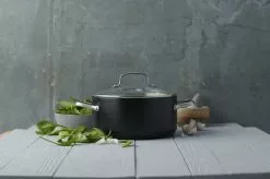 Med denne gryde med låg fra Berndes kan du lave mad med god samvittighed. Den er nemlig fremstillet i 100 % genanvendt aluminium fra 46 brugte dåser. Hertil får du en gryde med et flot og stilrent design og nogle gode features. Gryden har en keramisk non-stick belægning, så din mad ikke brænder på og med en god varmefordeling, er du sikret et perfekt madlavningsresultat.