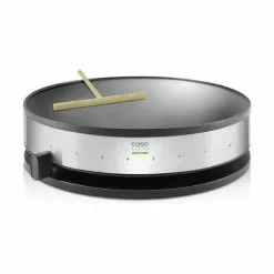 Med Wishco Caso crepepanden får du en ekstra stor bageplade med en diameter på hele 33 cm, så du kan lave store, lækre crepes. Og den smarte non-stick belægning gør, at dine tynde crepes ikke klistrer fast, men er nemme at vende. Du får også hele 8 indstillinger og en meget jævn varmefordeling grundet det støbte varmelegeme. Crepepanden er lavet af børstet rustfrit stål, og har et enkelt design. Der medfølger en dejfordeler og en crepes-vender af træ, så du kan lave autentiske crepes.