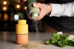 Billund kværnen fra CrushGrind er en innovativ “upside down” kværn, der er designet til at undgå drys på bordet. Den har en praktisk silikoneprop i bunden, der gør det nemt at fylde kværnen med dine yndlingskrydderier eller blandinger. Billund serien er ikke kun praktisk, men også smuk med et farverigt design inspireret af krydderifarver og skabt af det danske designfirma STILLEBEN. Materialet, som serien er lavet af, er en bæredygtig biokomposit, der giver produktet en varm, naturlig og jordnær fornemmelse og samtidig har et lavt CO2-fodaftryk.