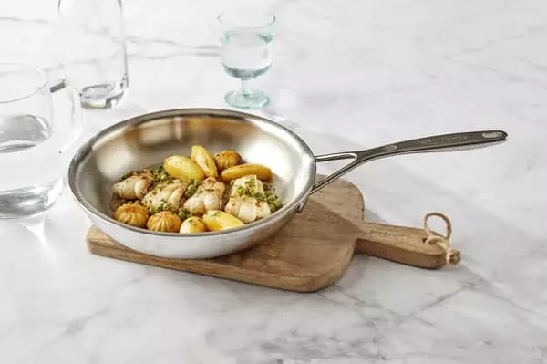 18/10 rustfrit stål med Silvinox® behandling for nem rengøring Kan bruges på alle varmekilder og gå i ovnen 7 lags materiale til kant