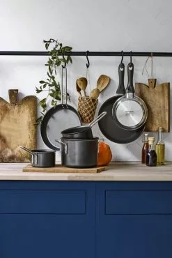 Eva Trios Black Line-serie er en fryd for både æstetikeren og dig, der kun vil nøjes med kvalitetsgrej på køkkenhylden. Black Line serien har Slip-Let® belægning, hvilket gør at maden ikke brænder fast – og så tåler den ovn op til 260° C og kan bruges på alle komfurtyper – også induktion. De brede håndtag giver et godt greb, og håndtagene bliver kun meget varme ved brug på gaskomfur og i ovn – ved brug på andre varmekilder vil du derfor kunne holde på håndtagene.