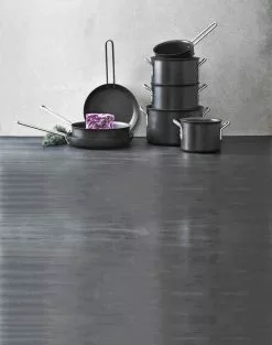 Eva Trios Black Line-serie er en fryd for både æstetikeren og dig, der kun vil nøjes med kvalitetsgrej på køkkenhylden. Black Line serien har Slip-Let® belægning, hvilket gør at maden ikke brænder fast – og så tåler den ovn op til 260° C og kan bruges på alle komfurtyper – også induktion. De brede håndtag giver et godt greb, og håndtagene bliver kun meget varme ved brug på gaskomfur og i ovn – ved brug på andre varmekilder vil du derfor kunne holde på håndtagene.