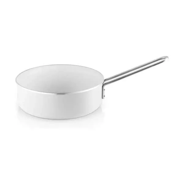 Seriens gryder og pander er alle klædt i et hvidt ydre – smukt, men stadig hårdført. Den hvide keramik kan tage høje varmetemperaturer, og tåler at blive brugt til hverdag.