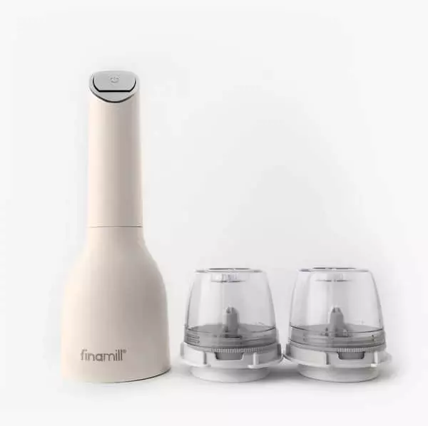 Krydderikværnen fra Finamill er batteridrevet og kan derfor betjenes med én hånd.
