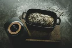 Med Fiskars Norden støbejernsgryde får du kvalitets køkkengrej i et enkelt og funktionelt design. Støbejern holder længe på varmen, hvilket gør gryden ideel til simremad og servering direkte fra gryden. Det bliver endnu nemmere at servere maden direkte fra gryden, da gryden kommer med en aftagelig bordskåner i finsk birketræ. Gryden er behandlet med den unikke ThermiumTM mineralbehandling, hvilket giver den overlegne non-stick egenskaber. Samtidig sikrer mineralbehandlingen også, at støbejernet ikke ruster eller kræver pleje med olie. Du kan bruge støbejernsgryden fra Fiskars Norden-serien på alle varmekilder.