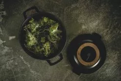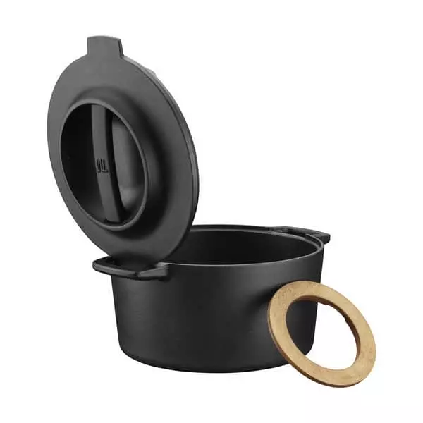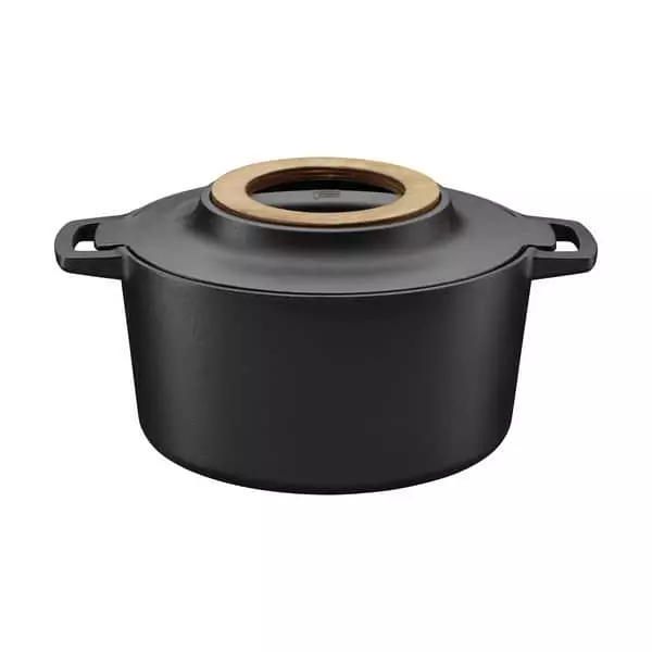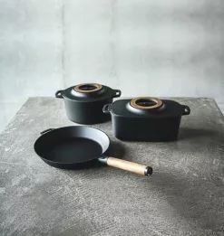 Med Fiskars Norden støbejernsgryde får du kvalitets køkkengrej i et enkelt og funktionelt design. Støbejern holder længe på varmen, hvilket gør gryden ideel til simremad og servering direkte fra gryden. Det bliver endnu nemmere at servere maden direkte fra gryden, da gryden kommer med en aftagelig bordskåner i finsk birketræ. Gryden er behandlet med den unikke ThermiumTM mineralbehandling, hvilket giver den overlegne non-stick egenskaber. Samtidig sikrer mineralbehandlingen også, at støbejernet ikke ruster eller kræver pleje med olie. Du kan bruge støbejernsgryden fra Fiskars Norden-serien på alle varmekilder.