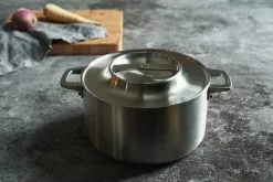 Den består af en 3-lags konstruktion med en kerne af aluminium – optimeret til jævn og effektiv varmefordeling på alle varmekilder. Du kan desuden færdiggøre dine retter i ovnen, da den tåler ovnvarme op til 240° C. På den måde bibeholder du en saftig anretning, som holder på den