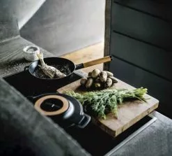 Med en pande fra Fiskars Norden-serie får du en støbejernspande der er skabt gennem en innovation kombination af materialer og design. Panden er belagt med den unikke ThermiumTM mineralbehandling, hvilket giver panden overlegne non-stick egenskaber – selv ved høje temperaturer. Støbejernspander er særdeles velegnede til retter som kræver meget høj varme, da støbejernet holder på varmen under madlavningen. Du kan også bruge panden i ovnen, da den har et aftageligt håndtag i finsk birketræ. Fiskars Norden støbejernspande kan bruges på alle varmekilder.