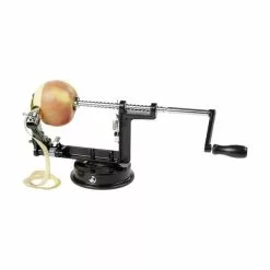 Æbleskrælleren har sugekop i bunden, så du kan sætte den fast på dit køkkenbord og få en stabil arbejdsstation, når de sprøde frugter skal skrælles.