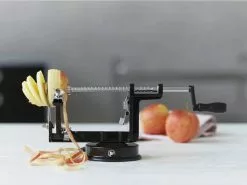 Når du bager æbletærte eller koger æblegrød, kan det være lidt af en opgave at skulle skrælle og ordne alle æblerne i hånden. Med den smarte æbleskræller fra Funktion kan du nemt både skrælle, dele og fjerne kernehus i én arbejdsgang.