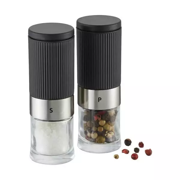 Stilfuldt salt- og pebersæt fra Gefu i miniformat.