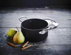 Gryden i Barcelona-serien fra Greenpan er designet til at holde. Solidt aluminium med keramisk non-stick belægning gør gryden særligt slidstærk og let at bruge, uden at maden koger på.