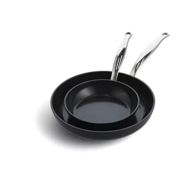 Barcelona Pro stegepanderne fra Greenpan er designet til at holde – det innovative design og materialer af høj kvalitet sikrer dig en professionel madlavningsoplevelse. Sættet med to forskellige størrelser giver dig desuden gode muligheder for at udfolde dine evner i køkkenet. Og da håndtagene er i rustfrit stål, kan du nemt tage stegepanderne fra komfur til ovn. Husk blot at bruge en ovnhandske, når du tager stegepanderne ud af ovnen, da håndtagene bliver varme.
