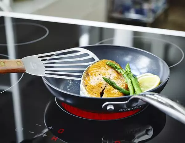 Stegepanden fra Greenpan er lavet af solidt aluminium, og derfor kan du stege ved meget høje temperaturer – det gælder på alle varmekilder. Da håndtaget er i rustfrit stål, kan du også sætte panden i ovnen. Men husk at bruge ovnhandske, når du tager panden ud, da håndtaget bliver meget varmt.