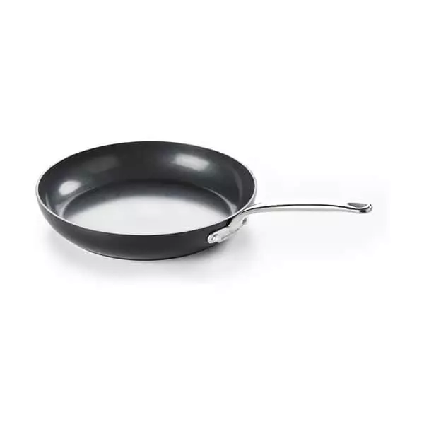 Stegepanden i Barcelona-serien fra Greenpan er designet til at holde. Solidt aluminium med keramisk non-stick belægning gør panden særligt slidstærk og let at bruge, uden at maden brænder på.