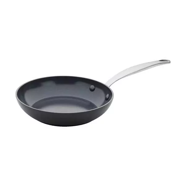 Stegepanden i Barcelona-serien fra Greenpan er designet til at holde. Solidt aluminium med keramisk non-stick belægning gør panden særligt slidstærk og let at bruge, uden at maden brænder på.