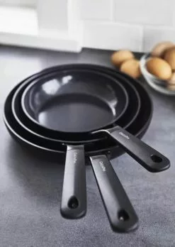 Smartshape panderne er designet til at kunne stables, uden at håndtaget rører ved kanten, og er derfor nemme at opbevare i køkkenskabet. Så du kan roligt starte din samling af Smartshape-pander og få dem i alle størrelserne, uden at pladsen bliver trang.