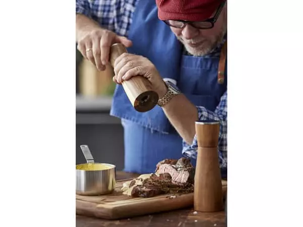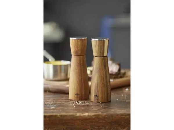 Ståltoppen og den smukke form giver kværnene et elegant udtryk, som vil passe ind i ethvert køkken. Kværnene kan med fordel efterbehandles med madolie et par gange om året for at bevare træets varme glød.