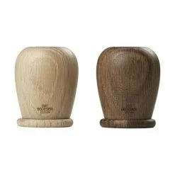 Stil salt- og peberkværnene fra Kay Bojesen Menageri på bordet. De er praktiske og smukke på samme tid. Hvert sæt har et unikt udtryk på grund af træets årer, der er forskellige fra sæt til sæt.
