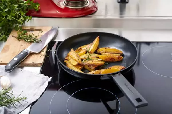 Stegepanden er lavet i aluminium med en ekstra tyk bund og 3-lags keramisk non-stick belægning, så du kan opnå den perfekte stegning uden at brænde maden på.