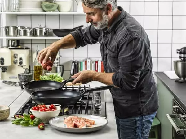 Du kan bruge wokken på alle varmekilder, inklusive induktion, og den tåler at komme i ovnen på op til 160°C.