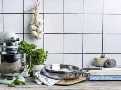 Proline fra KitchenAid er lavet af Multi-Ply rustfrit stål uden belægning. Det betyder, at den både tåler træ- og metalredskaber.