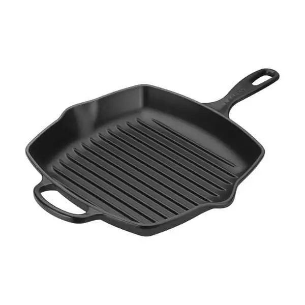 Få velsmagende grillstriber på bøfferne med Le Creuset grillpande. Uanset om det er gråvejr eller grillvejr, så er den rillede overflade perfekt til tunbøffer, laksebøffer, rejer, grøntsager eller saftig kylling. Støbejern er kendt for at være et af de bedste materialer til madlavning, da varmen fordeles jævnt og ensartet. Samtidig holder støbejernet på varmen og køler ikke ned, når du tilføjer madvarer. På den måde får grøntsagerne det perfekte bid og bøffen en dejlig stegeskorpe. Tåler ovn, grill og opvaskemaskine. Velegnet til alle komfurtyper – også induktion. Materiale: emaljeret støbejern. Farve: matte black. Grillpanden måler 26 x 26 cm. Le Creuset yder livstidsgaranti på støbejernsprodukter.