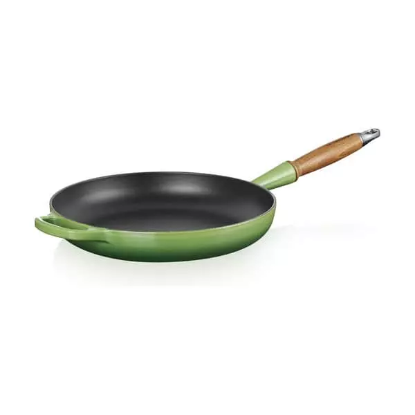 Støbejernspanden fås i et bredt udvalg af Le Creusets velkendte farver, så den matcher din øvrige Le Creuset samling eller dit køkken.