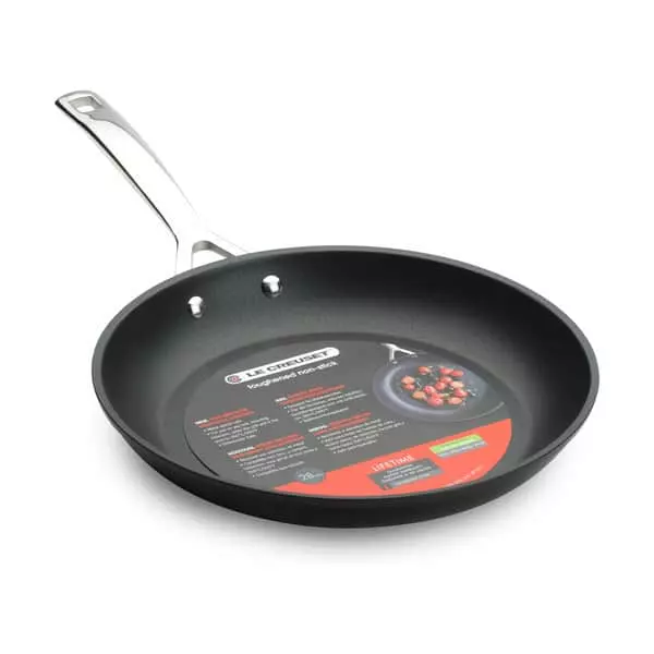 Panden fra Le Creusets Toughened Non-Stick-serie er suveræn når du skal stege kød og fisk. Takket være Toughened Non-Stick belægning vendes kødet let og er nemt at få fra panden over på tallerkenen.