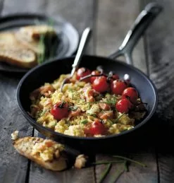 Panden fra Le Creusets Toughened Non-Stick-serie er suveræn når du f.eks. skal lave omeletter. Takket være Toughened Non-Stick belægningen, slipper omeletten let panden og er nem at vende.