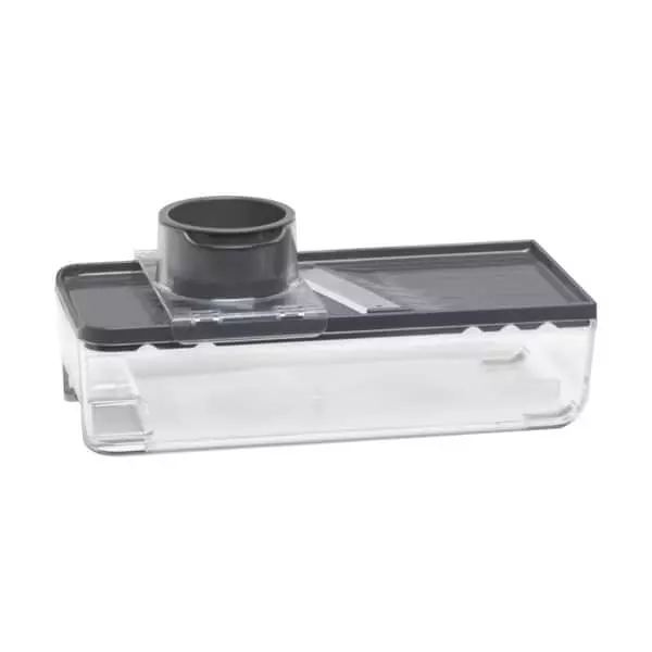 Rivejernet har et ergonomisk greb og en skridsikker beholder, så det står godt fast på underlaget, når du arbejder med det. Beholderen er på 1,5 liter, som giver dig rigelig af plads til dit rive- og snittearbejde.