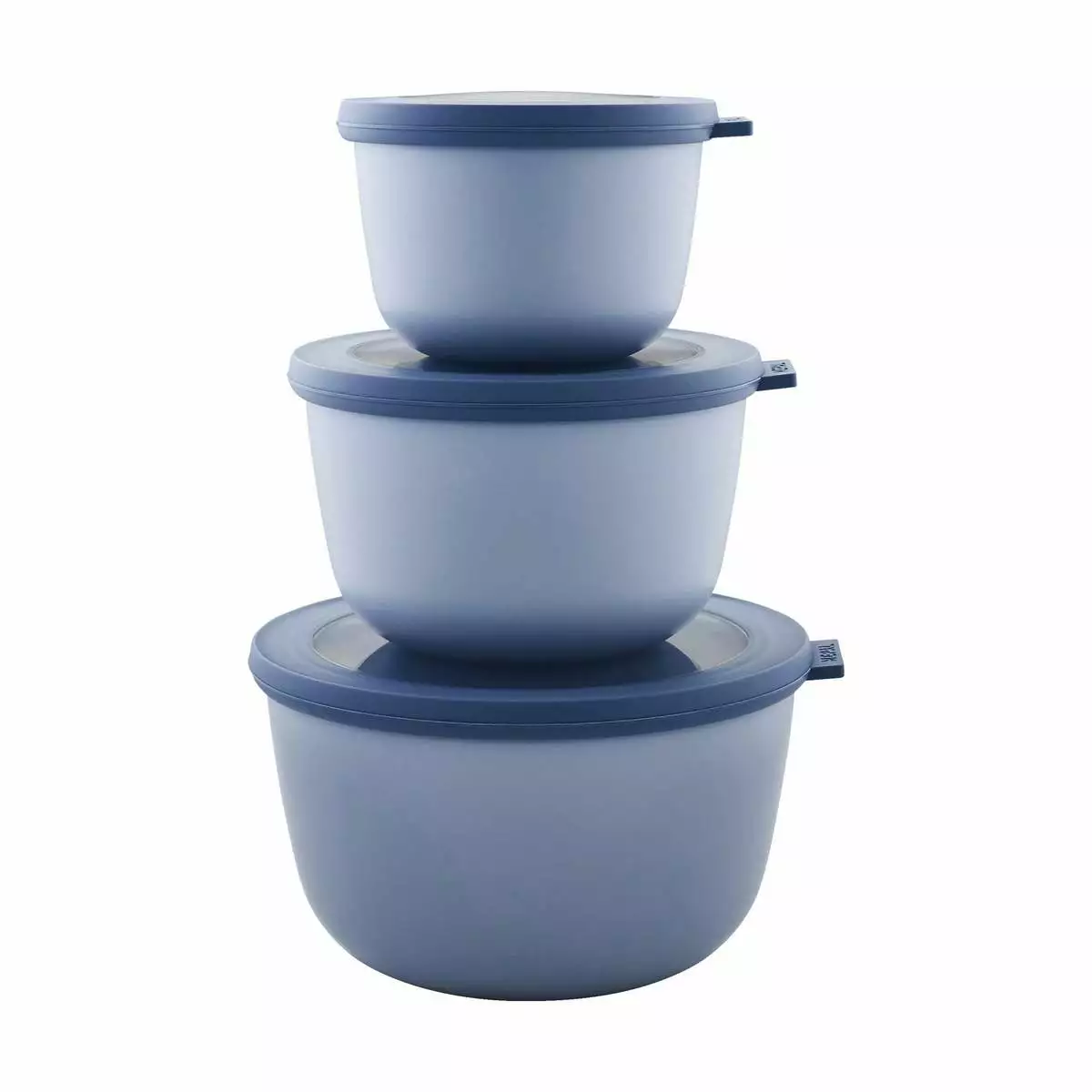 Mepal Cirqula har lavet et lækkert opbevarings- og serveringsskålesæt, som er både praktisk og dekorativ. Sættet består af 3 skåle med låg og kan rumme hengoldsvis 0,5, 1 og 2 liter.