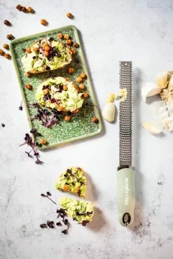 Imponer dine gæster med det sidste touch på hver tallerken med Microplane Zester rivejern. Du kan fx dekorere dine retter med fintrevet ost på pastaen eller puste ekstra liv i en wokret med et strejf af friskrevet ingefær. Microplane rivejern er designet, så du får en optimal riveflade og den største mængde af fintrevne ingredienser med hver bevægelse. Microplane rivejern har et ergonomisk soft-touch greb og en skridsikker fod.