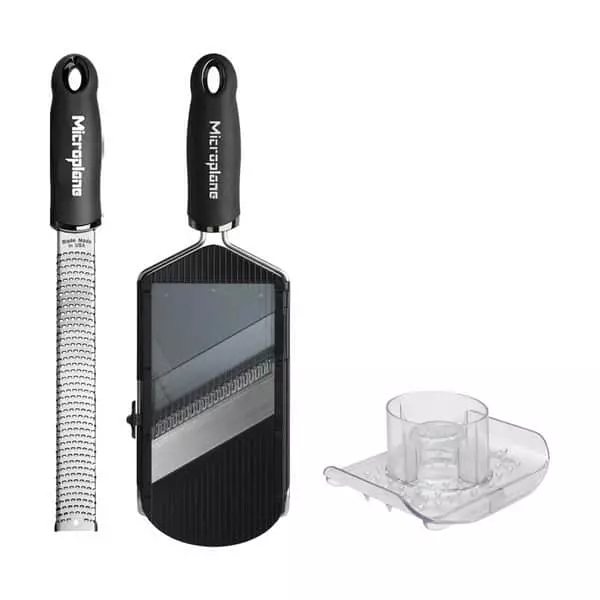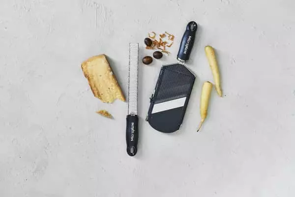 Microplanes rivejern er designet, så du får en optimal riveflade og den største mængde af fintrevne ingredienser med hver bevægelse. Rivejernet har et ergonomisk soft-touch greb og en skridsikker fod.