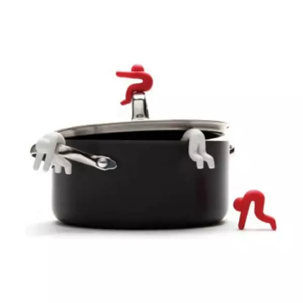 Brug Monkey Business Lid Sid holder til grydelåg og få et smil på læben når kartoflerne skal koges. De søde små figurer hænger ud i køkkenet og giver dig en hånd, når du har travlt med madlavningen. Hæng Lid Sid holder til grydelåg på kanten af gryden, så kartoflerne ikke koger over, mens du har travlt med at snitte salaten eller skære kødet. Lid Sid holder til grydelåg tåler opvaskemaskine. Materiale: silikone. Du får 1 æske med 2 Lid Sids: 1 rød Lid Sid og 1 hvid Lid Sid.