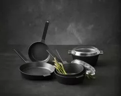 Gryden er fremstillet i støbt aluminium. Aluminium er et af de mest varmeledende materialer. Det fordeler og fastholder varmen jævnt og energieffektivt over både bund og sider, og samtidig er materialet let. Glaslåg (Ø 24 cm), som passer til gryden, sælges separat.