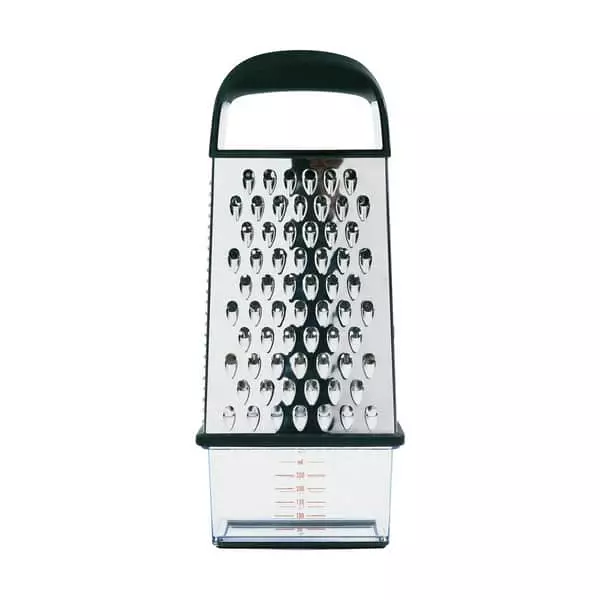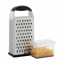 Rivejern med fire funktioner Beholder med mål og låg Non-slip håndtag og bund