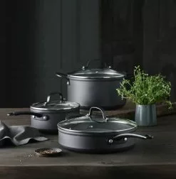 Arc gryden fra Pillivuyt Gourmet er med sin mørke silhuet en moderne og funktionel tilføjelse til køkkenet.