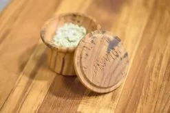 Baseret på de erfaringer som Læsø Salt har erhvervet sig igennem mange år i branchen, har RISVIG skabt et saltkar, hvor både låg og materiale sikrer at saltet ikke får fugt og hvor den gode smag bevares.