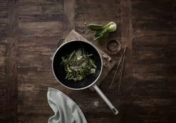 Med Elegance stegepanden fra Rösle får du en solid pande med keramisk non-stick belægning, der gør madlavningen nem og ligetil. Kartofler og andre grøntsager bliver jævnt sprøde og tilberedte på alle sider – uden at de hænger fast i panden.