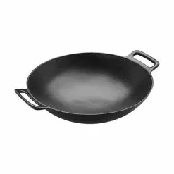 Denne wok er lavet af emaljeret støbejern, som sikrer en fremragende varmefordeling, hvorfor den er yderst ideel til hårdstegning af f.eks. grøntsager. Wokken kan med sin flade wokbase anvendes på grill og alle typer af kogeplader herunder også induktion.