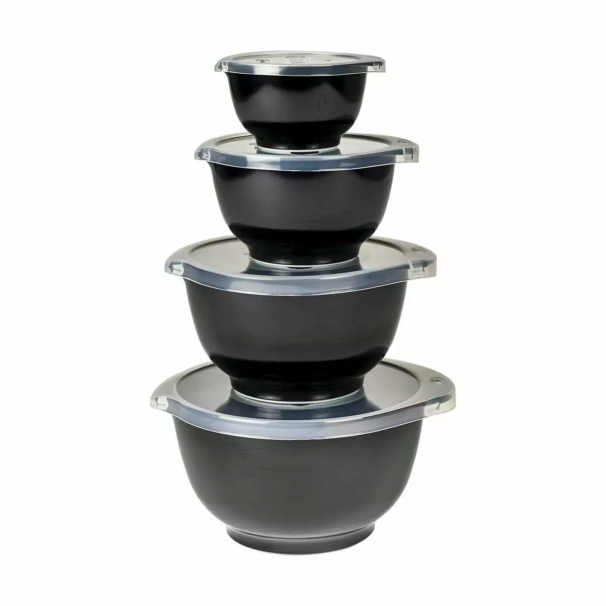 Skålene er udstyret med en skridsikker gummiring i bunden, så de står fast, når du rører ingredienser sammen i dem, eller når de står stablet og opbevarer madvarer i køleskabet.