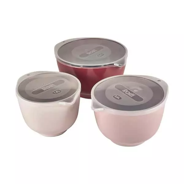 Margretheskålen er en uundværlig følgesvend i det moderne køkken. Et enkelt design og høj funktionalitet gør, at Margretheskålen fra Rosti i dag er populær som aldrig før. Dette sæt indehoder 3 af de mest anvendte størrelser med låg.