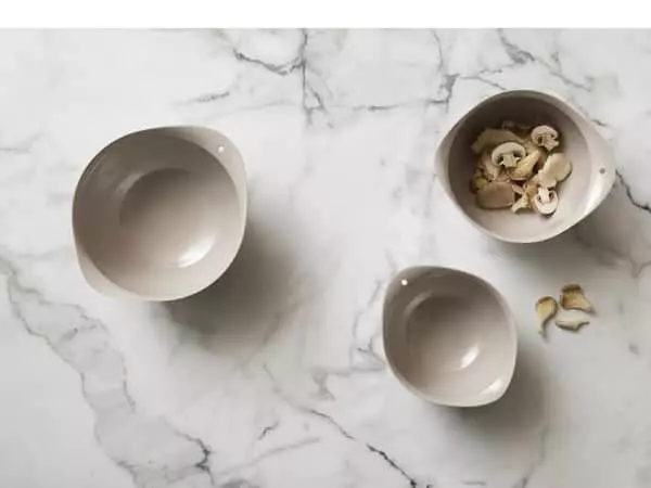 Victoria-skålen har stadig en høj funktionalitet, men dens sider, håndgreb og hældetud er ændret en smule. Desuden har skålens bund fået drænkanaler, hvilket sikrer, at al vand kan løbe af, når skålen sættes i opvaskemaskinen.