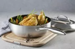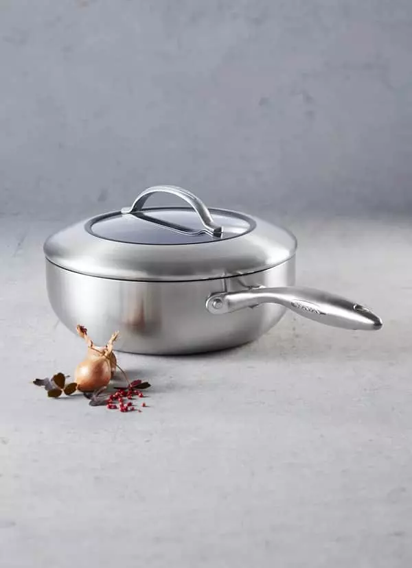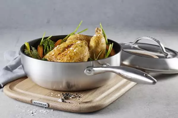 Scanpan sauteuse fra CTX serien er en sauterpande med eksra høje kanter. Netop derfor er sauteusen særligt velegnet til retter, der kræver omrøring. Den kan også fungere som stegepande, hvis du skal stege kylling eller brune kød.