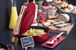 Egnet til alle komfurtyper, inklusiv induktion, og kan også bruges i ovnen Perfekte resultater takket være lågets specielle nedbørseffekt og knop-struktur Den matte, sorte indvendige emalje er ideel til svitsning , da den ikke misfarves og er særdeles holdbar