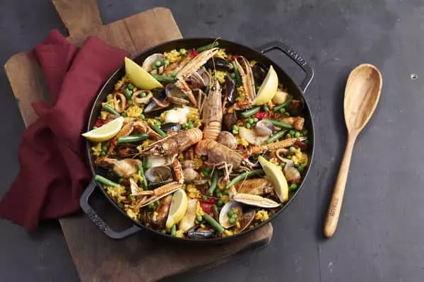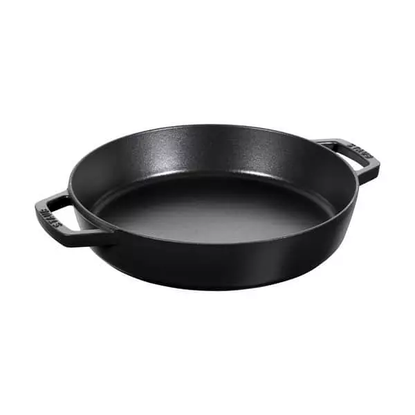 26 cm støbejernspande fra STAUB med to håndtag. Kan bruges på alle typer komfurer og i ovnen.