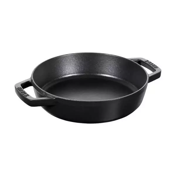 20 cm støbejernspande fra STAUB med to håndtag. Kan bruges på alle typer komfurer og i ovnen.
