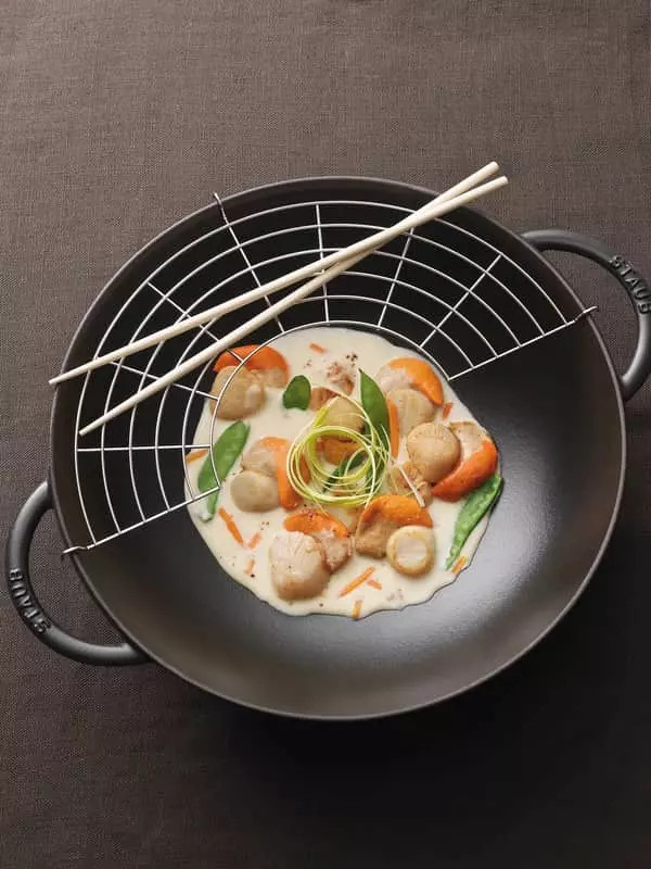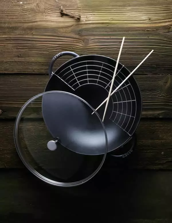 Rustik Staub wok i støbejern til tilberedning af asiatiske retter.